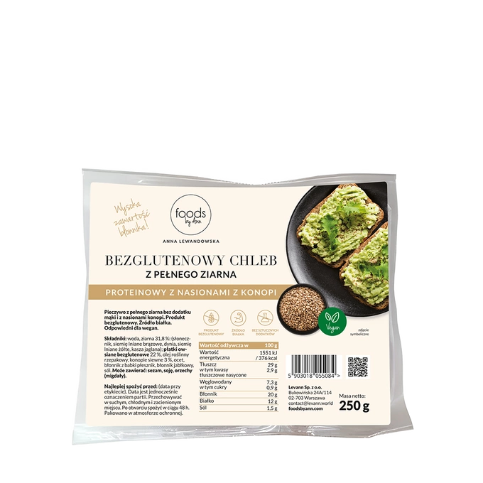 Gluten-free whole grain bread with hemp seeds, 250 g