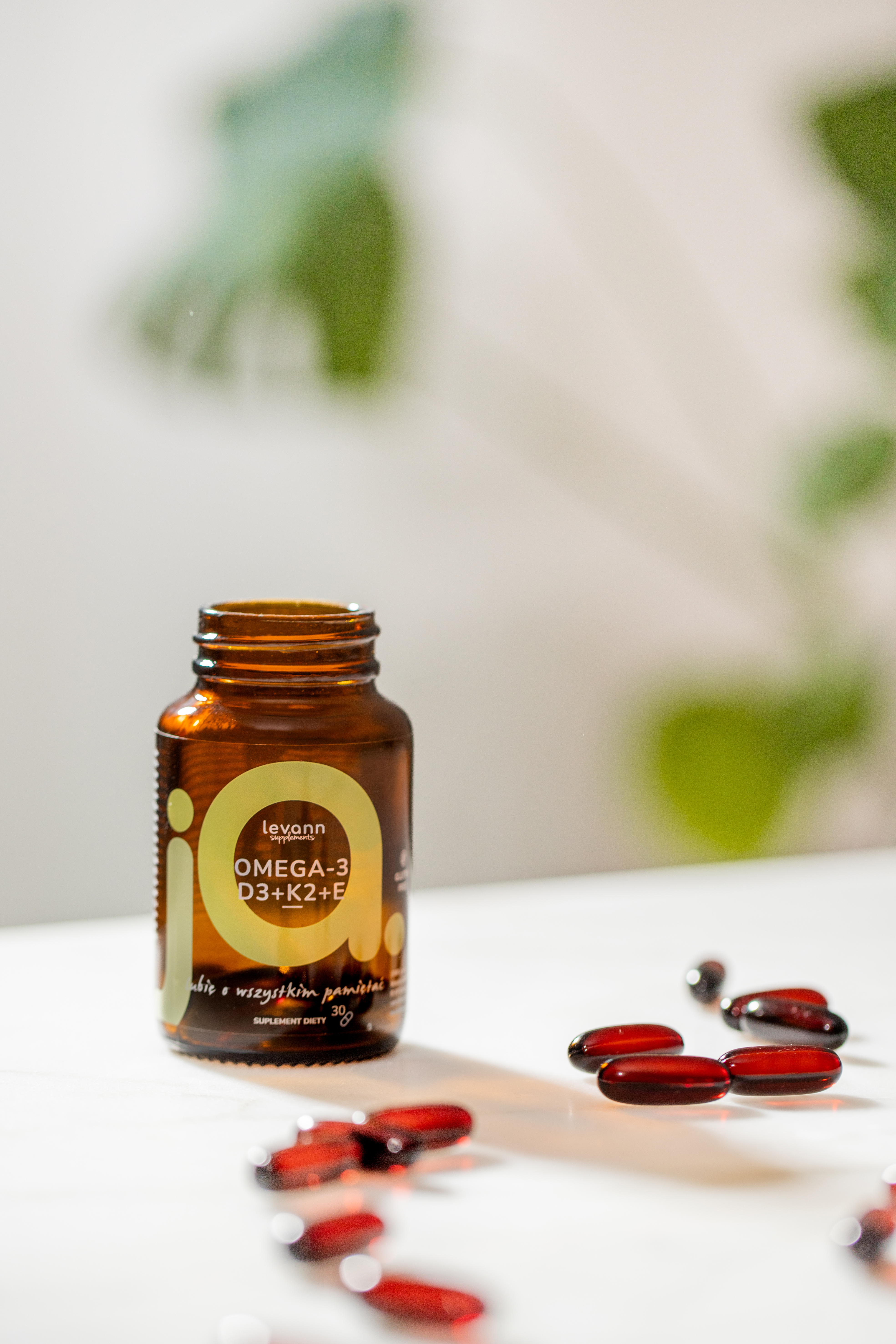 Właśnie dlatego powstał suplement Levann Omega-3 + D3 + K2 + E, który oprócz kwasów omega-3 zawiera także witaminy o silnym działaniu antyoksydacyjnym i wspierającym układ nerwowy. Witamina E chroni komórki mózgowe przed stresem oksydacyjnym, a witaminy D3 i K2 wspierają nie tylko odporność, ale także prawidłowe funkcjonowanie układu nerwowego i krążenia.