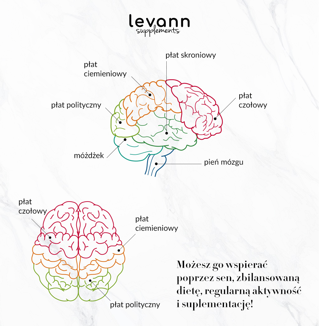 Każdy z tych obszarów pełni inną rolę, ale dopiero ich współpraca sprawia, że organizm działa prawidłowo. Mózg koordynuje nie tylko procesy poznawcze, lecz także funkcjonowanie serca, układu hormonalnego czy gospodarki energetycznej. Dlatego każde jego zaburzenie od razu odbija się na zdrowiu i jakości życia – od problemów z koncentracją, przez trudności w poruszaniu się, aż po zaburzenia pracy narządów wewnętrznych. Właśnie dlatego tak istotne jest wspieranie go każdego dnia poprzez dietę, sen, aktywność fizyczną i odpowiednią suplementację [1].