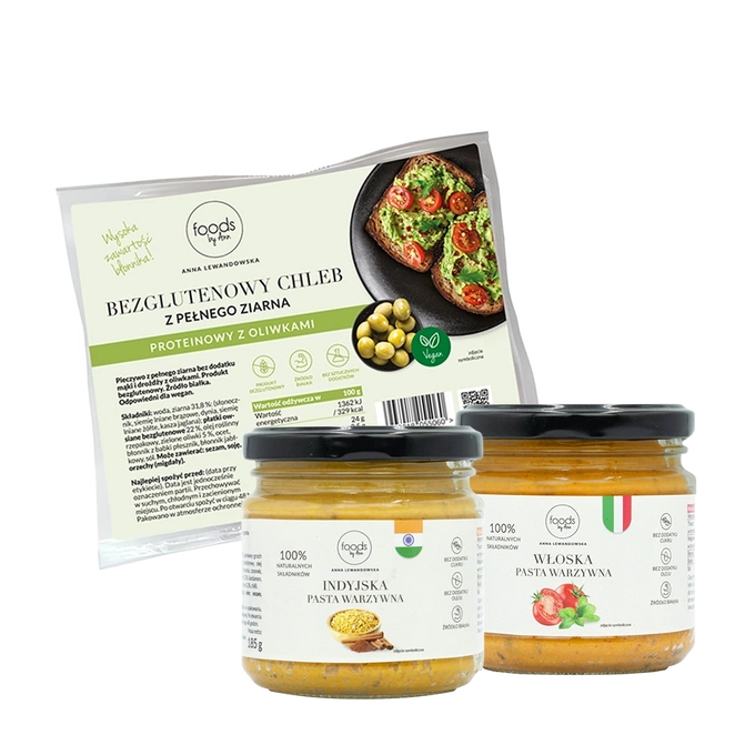 • Choose gluten-free bread with olives as a healthy base for sandwiches and vegetable spreads (Indian, Italian) made from chickpeas and peas, rich in protein and lactose-free, ideal for spreading and as an addition to many dishes.