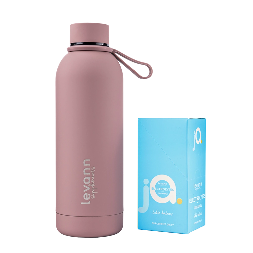 - A set designed for full hydration – a stainless steel thermal bottle + Levann “jA” Electrolytes. Get ready for hot days and always have a cool drink on hand to replenish the most important vitamins and minerals.