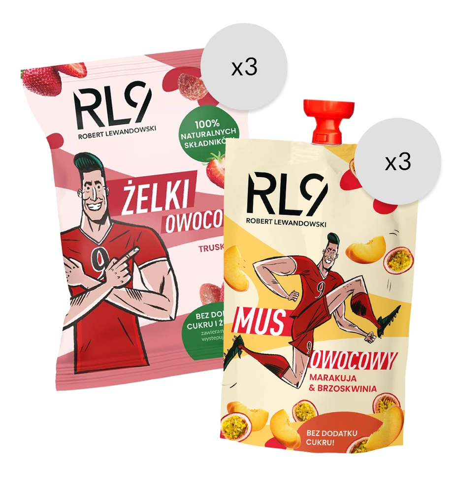 Zestaw: RL9 Żelki owocowe Truskawka x3 i Mus owocowy x3