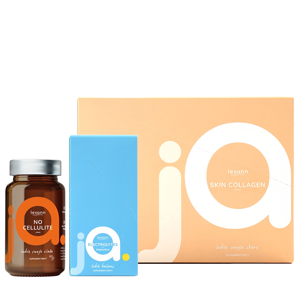- Levann «jA»: Skin Collagen con colágeno y vitaminas para una piel radiante, No Cellulite con extractos vegetales que favorecen la firmeza de la piel, y Electrolytes en sobres para una hidratación óptima y el equilibrio electrolítico.