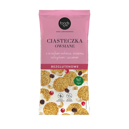 Bezglutenowe ciasteczka owsiane z nerkowcami, żurawiną i rodzynkami, 100 g